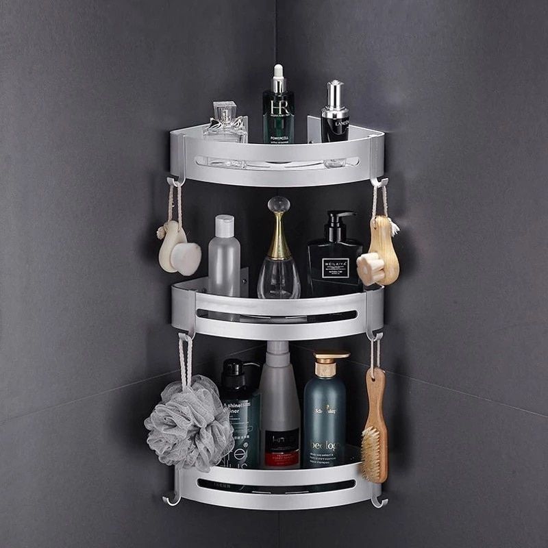 Verabschieden Sie sich vom Chaos in Ihrer Dusche mit unserem eleganten Eckduschregal aus Aluminium mit Haken!