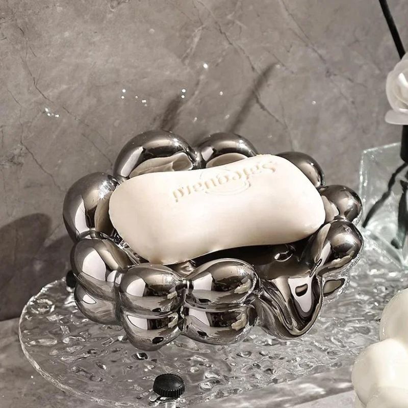 Das Herzstück dieser Keramik Seifenschale in Wolken-Design ist zweifellos ihr einzigartiges, organisches Form. Inspiriert von der sanften Ästhetik von Wolken, präsentiert sich diese Schale in einer Reihe von weichen, abgerundeten Formen, die gleichzeitig verspielt und luxuriös wirken. Gefertigt aus hochwertiger Keramik, fühlt sie sich glatt und angenehm an und verleiht Ihrem Raum eine ruhige Eleganz. Die strahlend weiße Ausführung (wie auf dem Bild zu sehen) fügt sich nahtlos in jede Farbpalette ein, während die Option in glänzendem Silber einen glamourösen Akzent setzt. Die transparente, wellenförmige Ablagefläche mit ihren stabilen Füßen ergänzt das Design perfekt, indem sie die Seifenschale stilvoll erhöht und für eine effektive Belüftung sorgt, ohne die Eleganz zu stören.