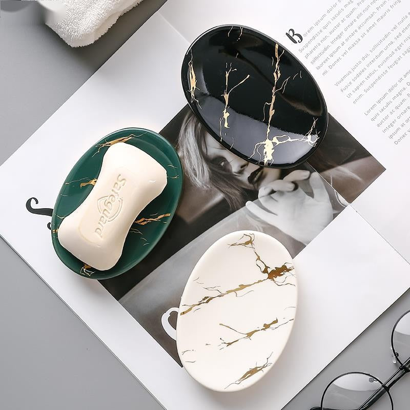 - Hochwertiges Design: Ein goldener Rand verstärkt den exklusiven Charakter der Ovalen Seifenschale in Marmor-Optik und sorgt für einen glamourösen Abschluss.